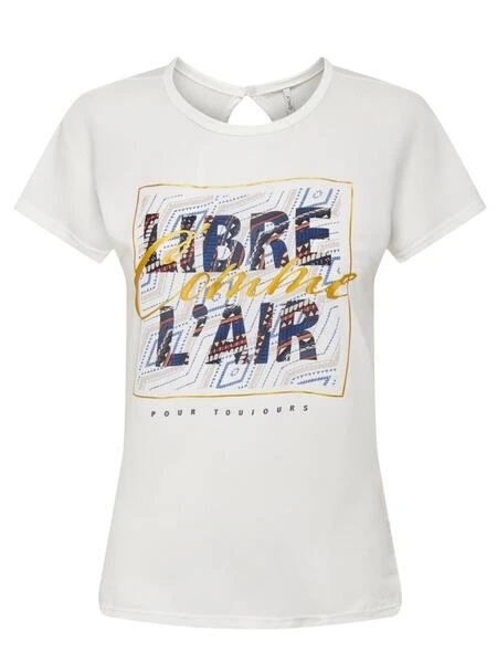 T-Shirt Only. Modèle Emma. Couleur Blanc. Manche court. Fermeture boutonnĂ©e au dos. RĂ©glage Regular. Printed sur la poitrine avec la mention « Libre l’air ».