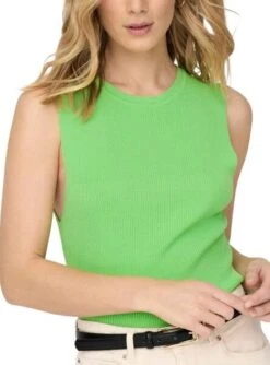 T-Shirt Only. Modèle Majli. Couleur vert. Sans manches. Col rond. Conception ajustée.