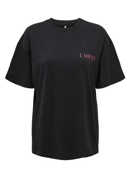 T-Shirt Only. Modèle Sara. Couleur noir. Ample. Manche court. Illustration en rose au dos. Message thoracique Me.