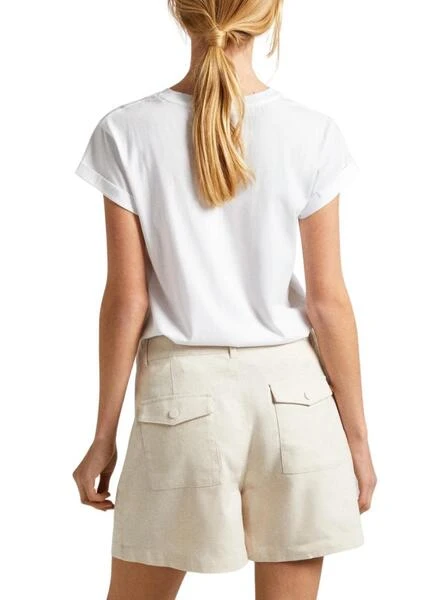 T-shirt Pepe Jeans. Modèle Kayla. Couleur blanche. Col rond. Manches courtes avec ourlet. Tissu en jersey de coton. Coupe ajustée. Finitions avec double surpiqûre. Logo Pepe Jeans.