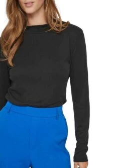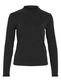 T-Shirt Vila. couleur noire. Manche longue. Long cou. Tissu côtelé. Regular fit Le mannequin porte la taille S.
