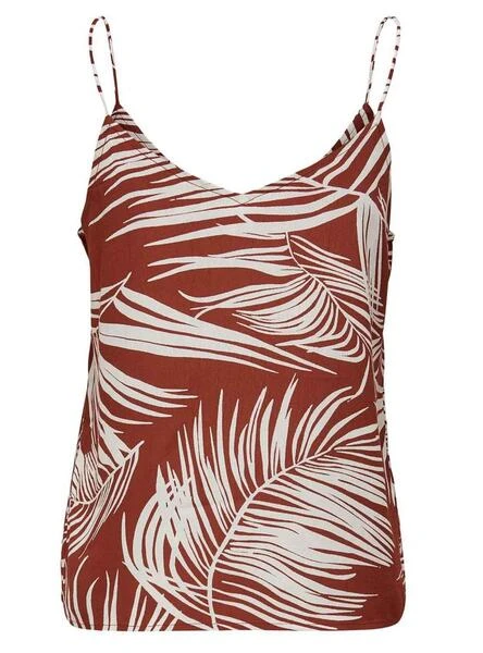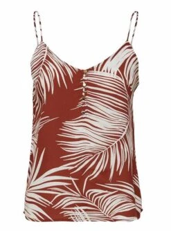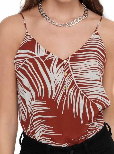 Top Only. Modèle Augustina. Bordeaux. Encolure en V. Imprimé tropical. Boutons sur la poitrine. Bretelles.
