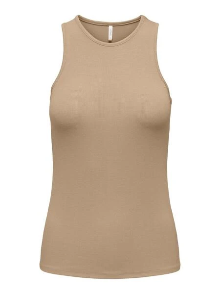 Top Only. Modèle Belia. Couleur marron. Avec bretelles. Col rond. Sans manches.