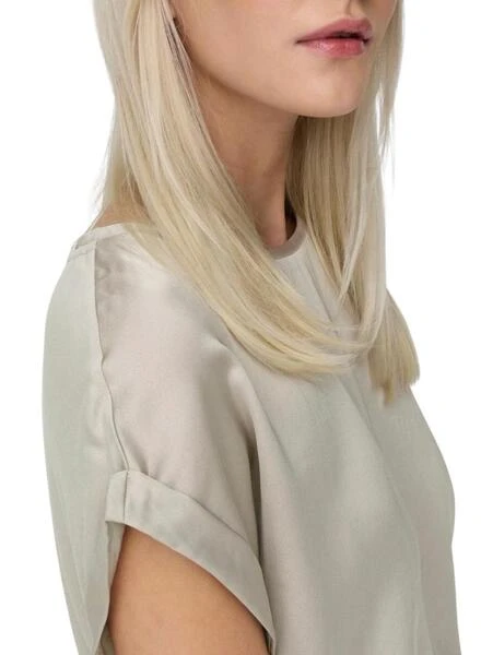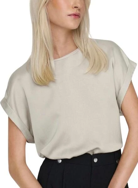 Top Only. Modèle Lieke. Couleur gris. Manches courtes avec ourlet. Col rond. Coupe régulière.
