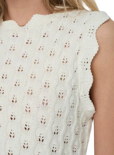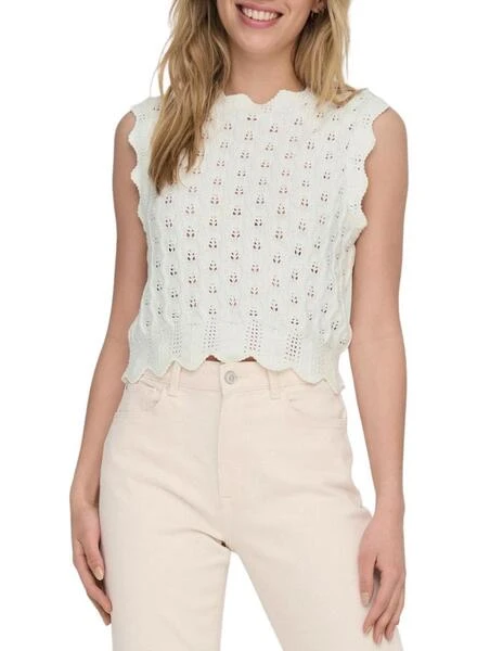 Top Only. Modèle Luna. Couleur blanche. Sans manches. Détail festonné. Coupe régulière.