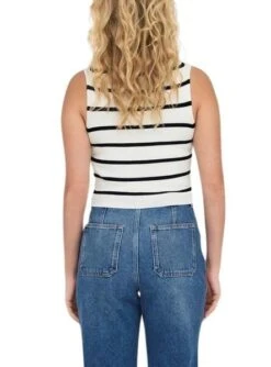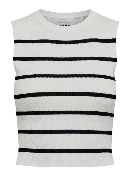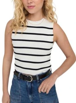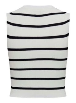 Haut seulement. Modèle Majli. Couleur blanche. Col rond. Sans manches. Rayures imprimées.