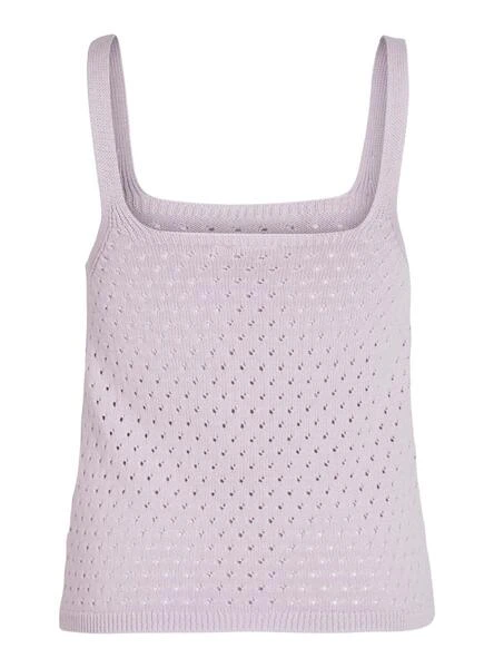 Top Vila. Ajouré. Couleur mauve Col carré. de bandes Extrémités côtelées. Regular fit.