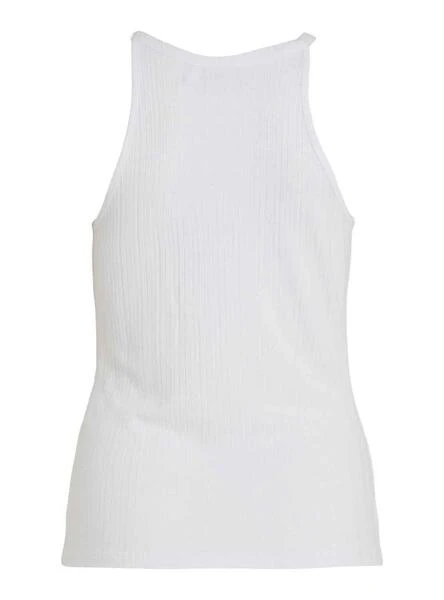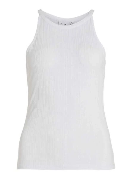 Top Vila. Modèle Thalie. Couleur blanc. Sans manches. Col rond. Tissu extensible.